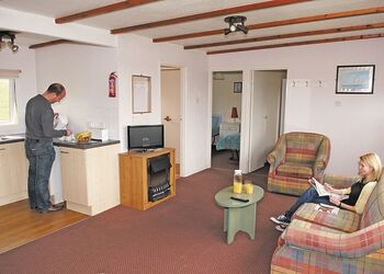 Chalet with one double and one twin. Shower. Additional sleeping for two in the lounge area. Fridge/freezer. No pets.Images are representative and may not be the specific accommodation assigned on booking.