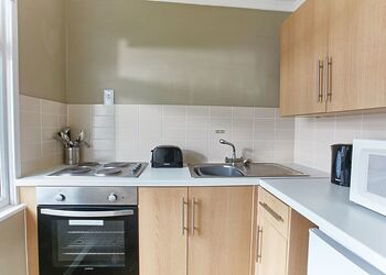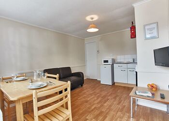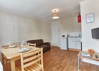 First floor apartment with one double. Shower. Additional sleeping for two in the lounge area, only suitable for children. No pets.Images are representative and may not be the specific accommodation assigned on booking.