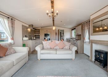 Caravan with one double and one twin. Shower. Additional sleeping for two in the lounge area. Fridge/freezer. Double glazed and centrally heated. No pets.Images are representative and may not be the specific accommodation assigned on booking.