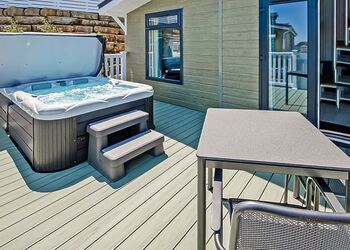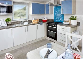 Modern and contemporary two bedroomed lodge with one double and one twin. Family bathroom with overhead shower. Modern kitchen including dishwasher. open-plan living and dining area. Centrally heated. Decking with furniture and outdoor hot tub. Early 3.00pm check in.Images are representative and may not be the specific accommodation assigned on booking.