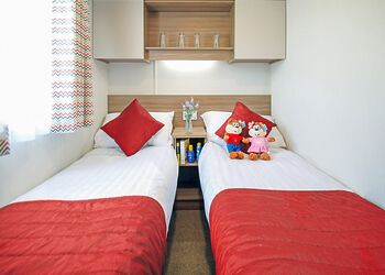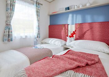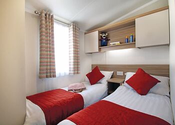 Stylish 12ft-wide caravan with one double and two twin. Shower. Double glazed and centrally heated. DVD. Garden furniture.Images are representative and may not be the specific accommodation assigned on booking.