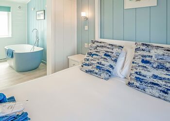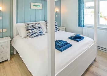 Luxury one bedroom lodge with four poster bed, freestanding bath and en suite shower. Dishwasher and washing machine. Wine cooler. Double glazed. Decking with garden furniture and outdoor hot tub. Pets allowed.