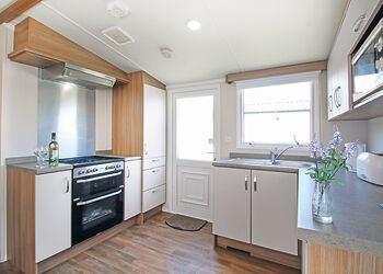 Luxury lodge style holiday home with one double with en suite shower and two twin. Bath and separate shower. DVD. Dishwasher and washing machine. Double glazed. Verandah with garden furniture and barbecue stand. Outdoor hot tub. Early 2.00pm check in. No pets.Images are representative and may not be the specific accommodation assigned on booking.