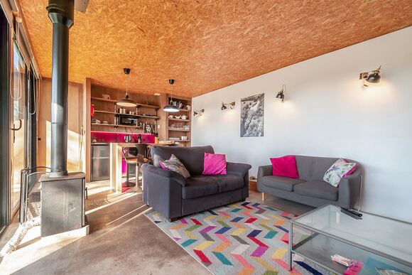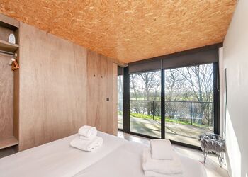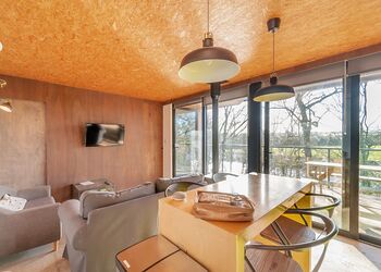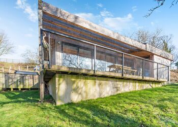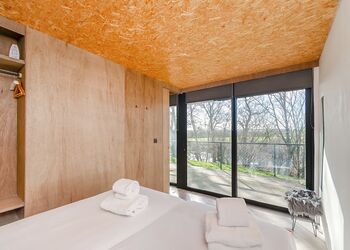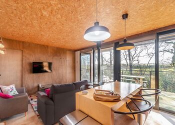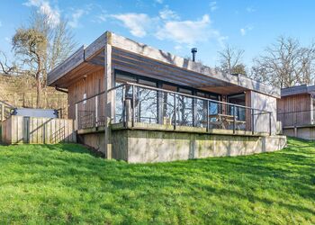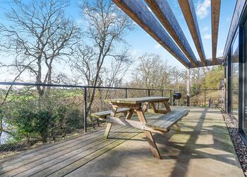 Each lodge boasts a unique industrial New York loft interior, complete with panoramic windows and underfloor heating, ensuring a cosy stay regardless of the season. The south-facing decking offers a tranquil spot to relax, with the gentle sounds of the river providing the perfect backdrop.