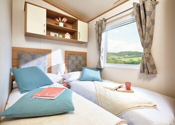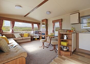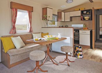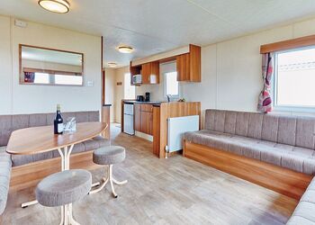 12ft-wide caravan with one double with en suite W.C. and one twin. Additional sleeping for two in the lounge area. Fridge/freezer. Double glazed and centrally heated. No petsImages are representative and may not be the specific accommodation assigned on booking.