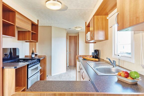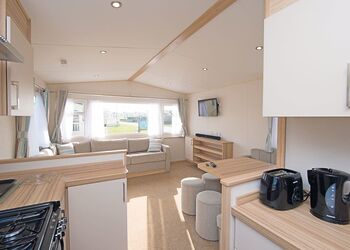 Our best in range caravan. Features a spacious interior with a premium finish for a memorable stay. Features a fully equipped kitchen, heating & double glazing, a bathroom with shower, and beds fully made up on arrival. Plus, a complimentary hub pass!Images are representative and may not be the specific accommodation assigned on booking.