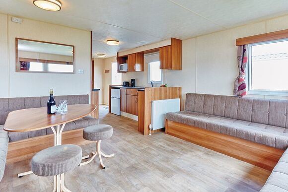 If you would like something bigger, this caravan is a spacious option with even more room in the living area. Features a fully equipped kitchen, heating & double glazing, a bathroom with shower, and beds fully made up on arrival. Plus, a complimentary hub pass!Images are representative and may not be the specific accommodation assigned on booking.
