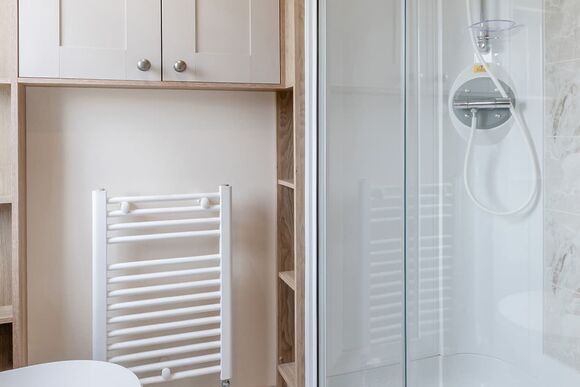 - Heated towel rail or radiator in shower room