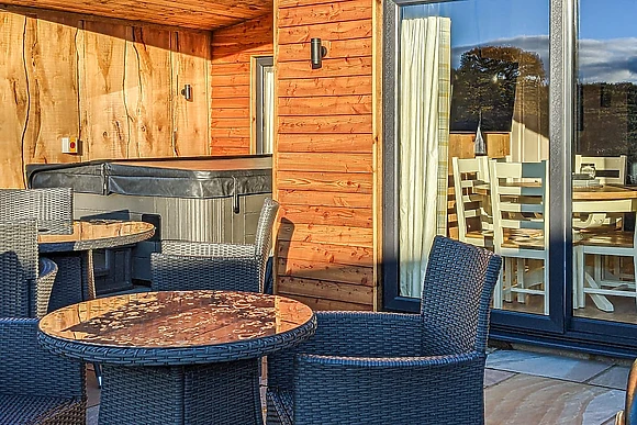 - Private decked area with bubbling hot tub and BBQ