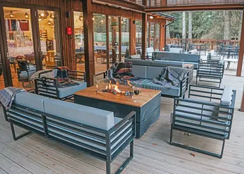 - Forest Retreat restaurant area with small shop selling gifts and groceries