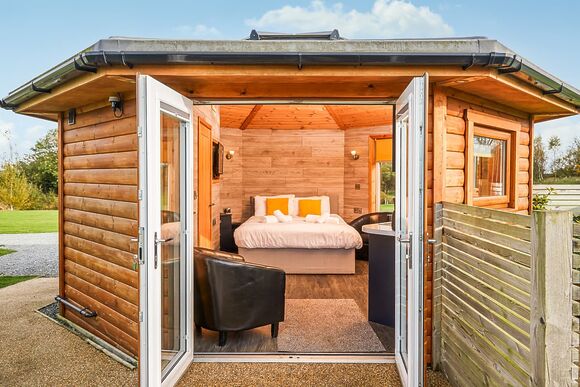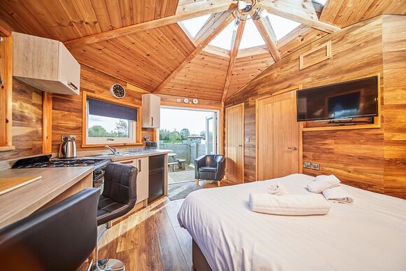 - Open plan mini-lodge with high quality furnishings