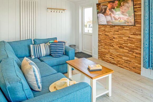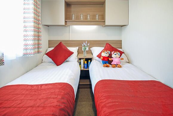 - Contemporary caravan with one double with en suite shower and one twin with flatscreen TV