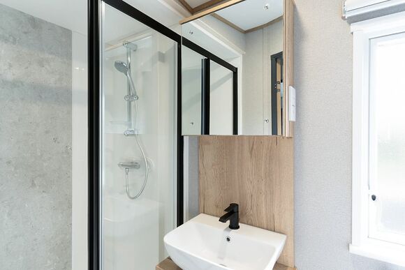 - Contemporary 12ft-wide caravan with one double with en suite shower and two twin